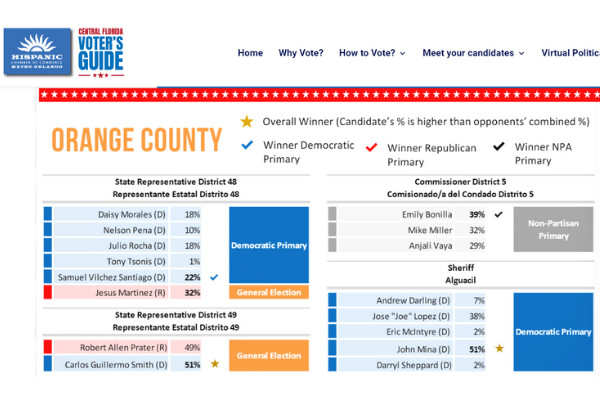 ORLANDO, Fla. (FNN NEWS) – The Hispanic Chamber of Commerce of Metro Orlando (HCCMO) released the results of its Political Hob Nob straw poll yesterday and showed by the numbers what was ostensibly true: In the Florida House District 48 Democratic primary race, despite the fierce five-candidate competition, all eyes are on Orange Soil & Water Conservation District Supervisor Daisy Morales, Julio Rocha and Samuel Vilchez Santiago.
